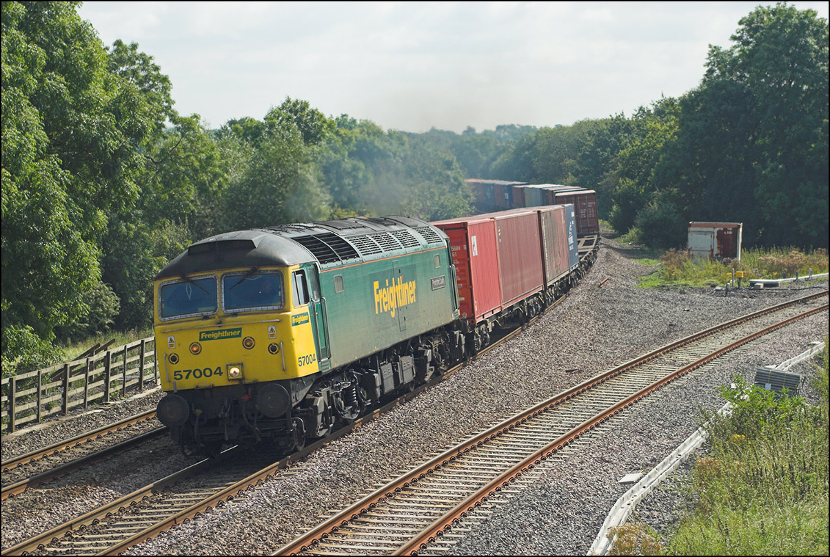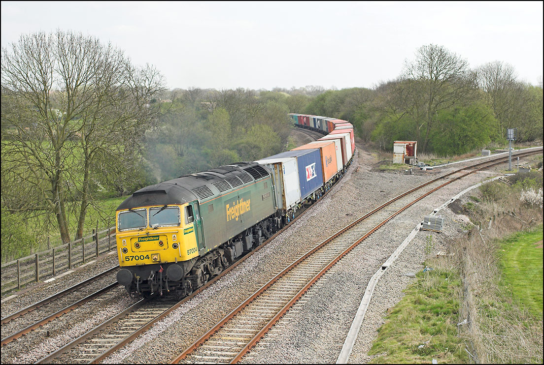 The first, and as it happened, the last of the scheduled freights I went to Hatton North Junction to see on 11 April 2007 was 4M55 in the hands of 57004. This was some 90 minutes late when it passed me and it was later reported that there was a major signalling problem