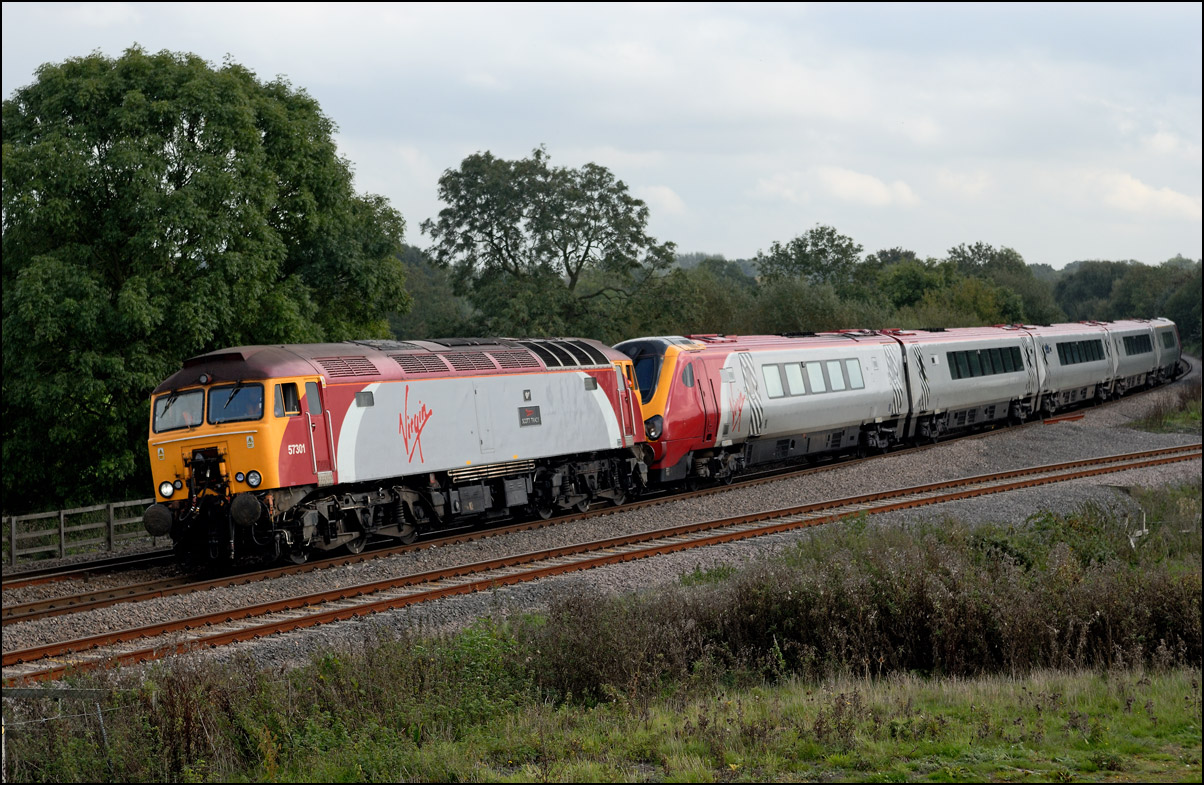 good fortune 57301 was in the area on a traction training exercise for Saltley crews prepraring for such an eventuality. The Voyager limped to Banbury where the train was cancelled and rescheduled as 5D12 13.00 to Central Rivers.