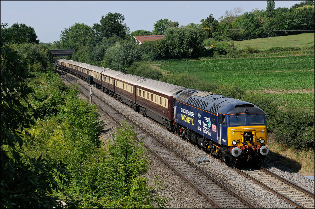 I believe that it is quite unusual for a DRS class 57 to be used on the Northern Belle so when I saw that 57307 would be leading 1Z16 from Worcester Shrub Hill to Swindon a trip out had to be made. My chosen location was