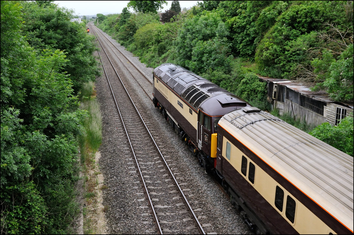 and I had to bump up the ISO to 800 to ensure a high enough shutter speed to get a sharp image as the train went towards Honeybourne North Junction under a green signal on its way to Worcester for a run-round before going off to Newport.