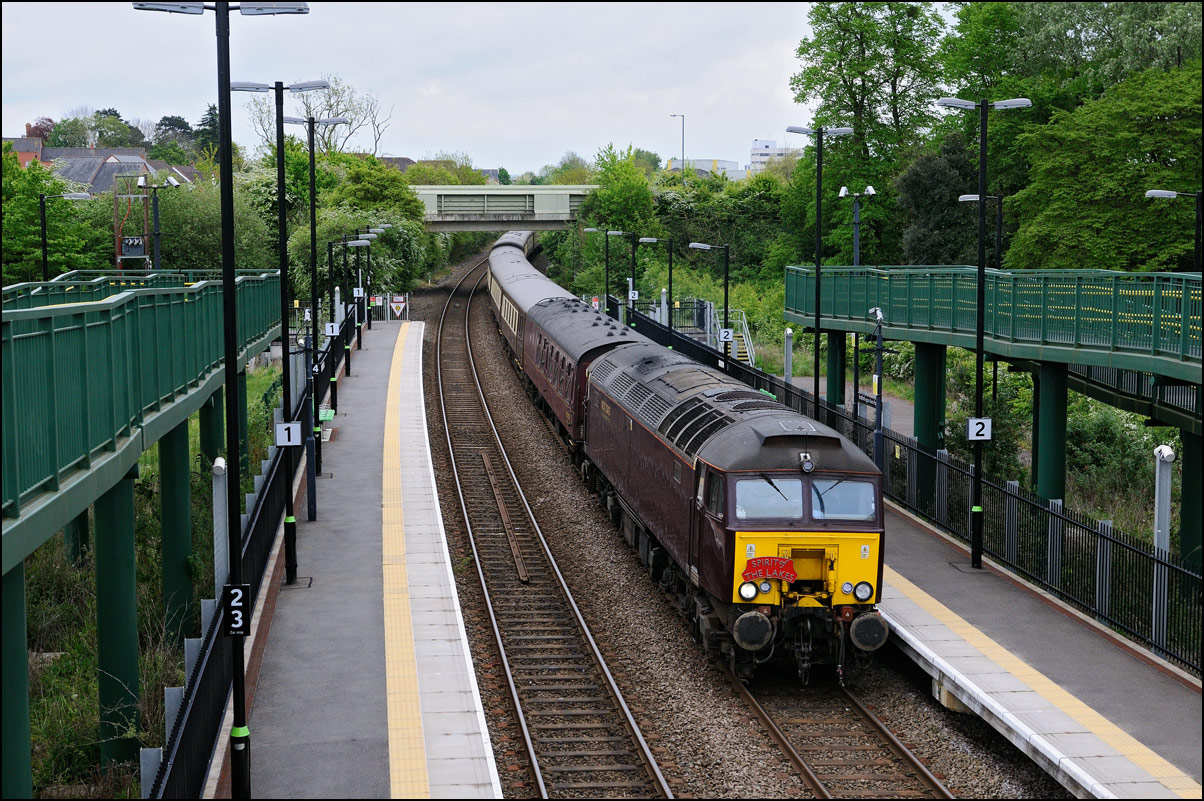 The departure of 1Z74 from Stratford-upon-Avon when it headed for Oxford was scheduled for 14.10 which had given the passengers plenty of time for some lunch and a look around the town. The train was headed by 47854 and is here seen at Songar Crossing