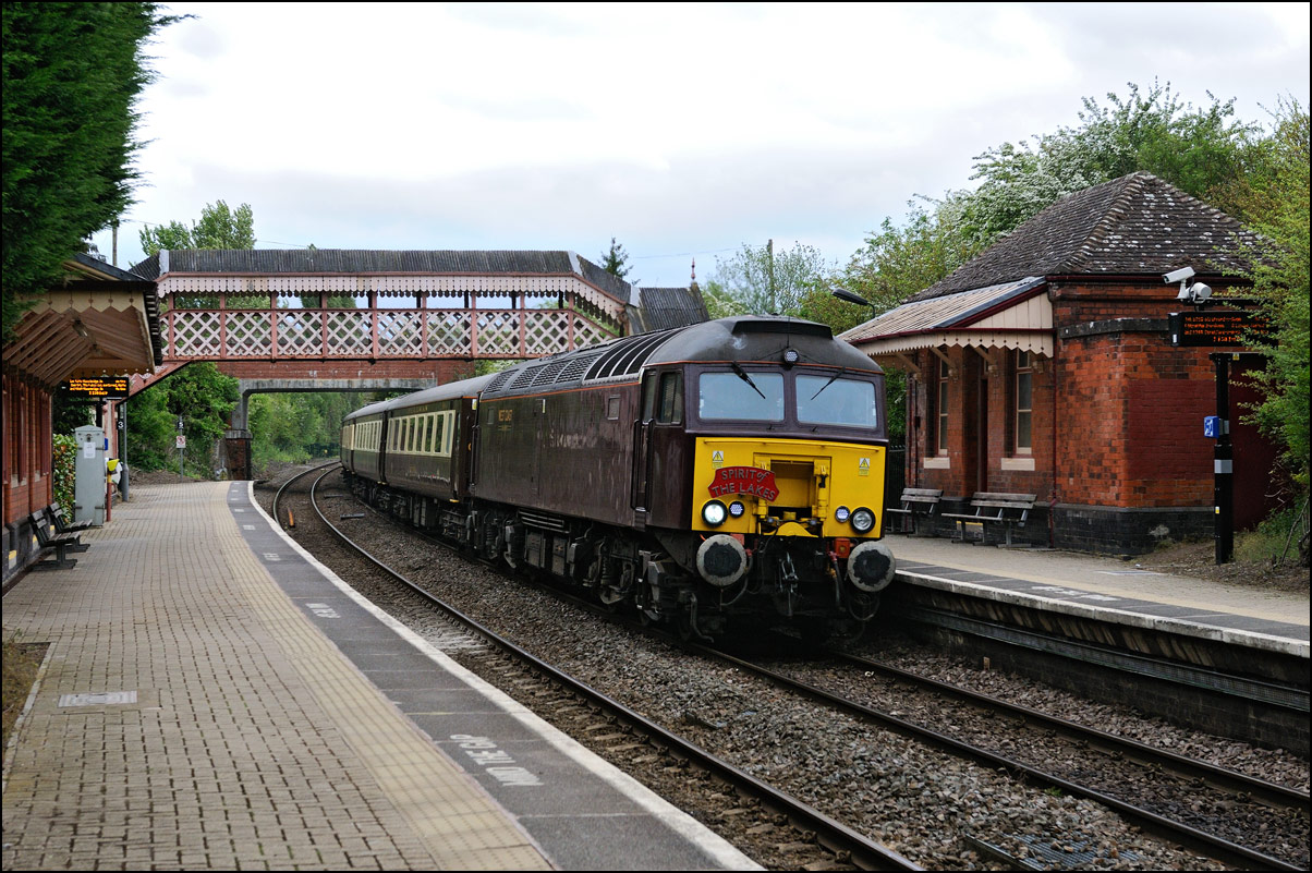 when the North Warwickshire Line is resignalled so I was more than happy to get a locomotive hauled train here. The tour, 1Z73, was spot on time as it pulled away from Bearley Junction after waiting a few minutes for the preceding class 150