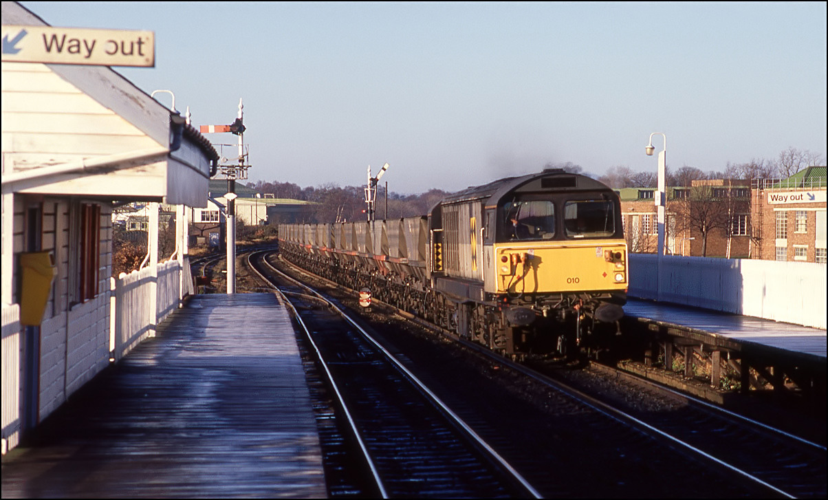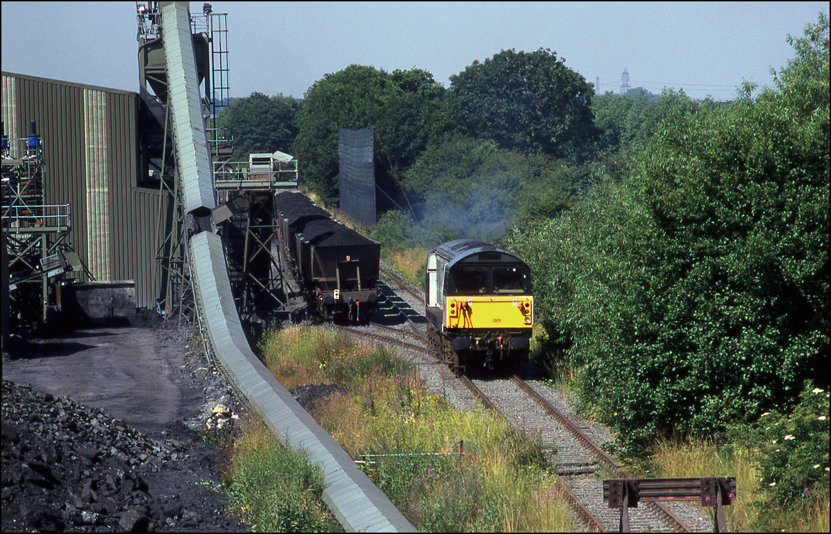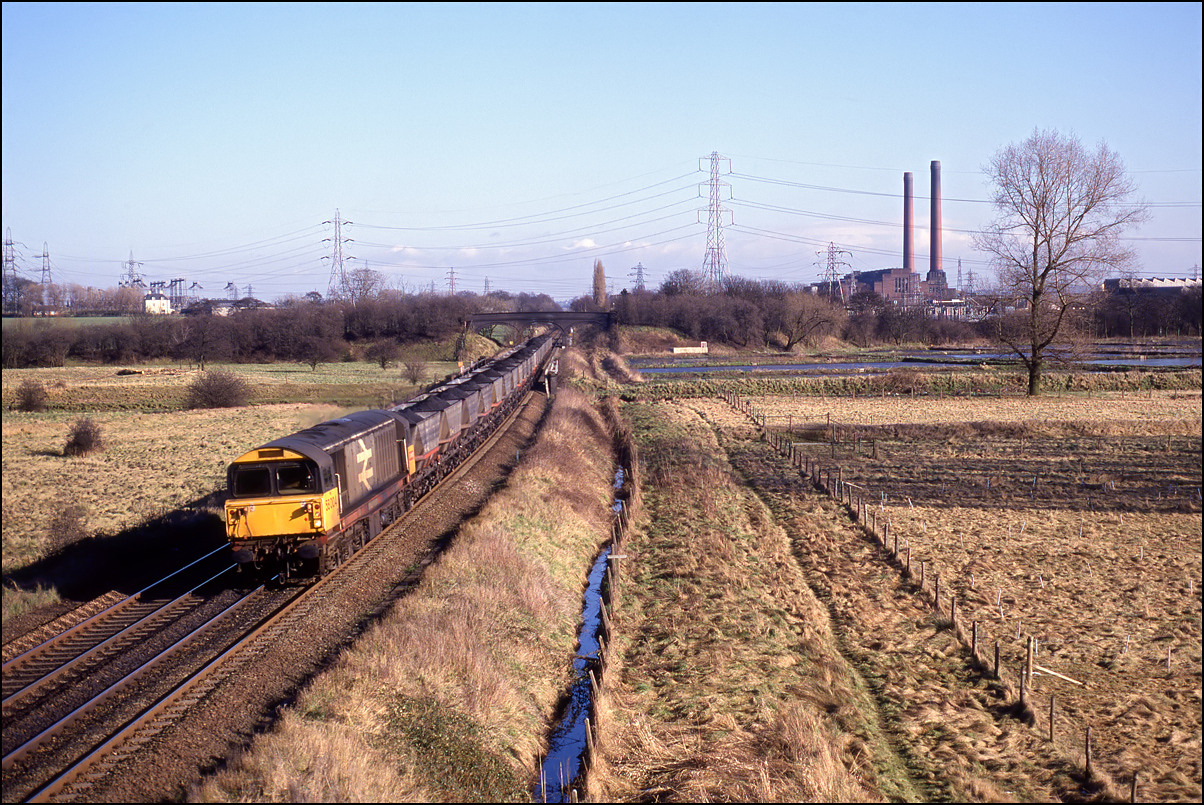 On 19 January 1991 I was there in the late morning when 58005 was working an empty MGR from the power station to either Silverdale or Littleton colliery. A few years later the same locomotive broke new ground for the class when it visited Stratford-upon-Avon