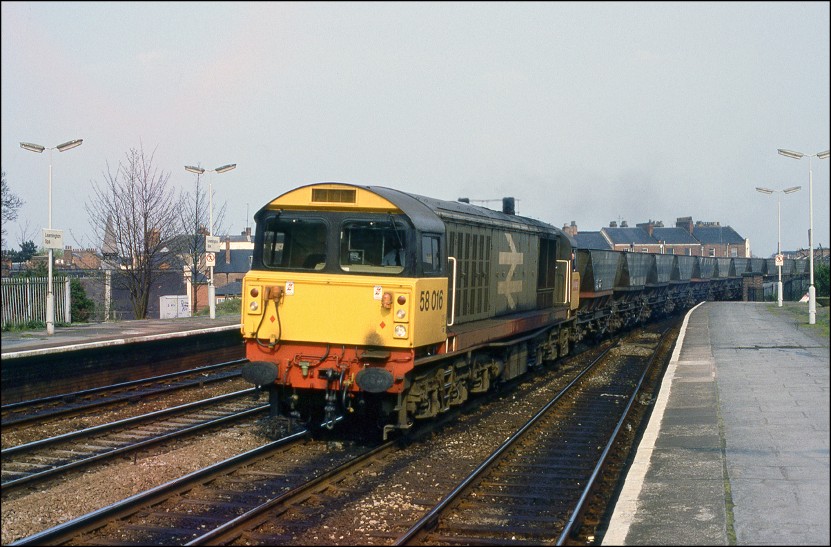 The line through Leamington Spa saw many diverted passenger trains on Saturday 11 May 1985. One of the most notable was the use of 58016 on a down express pictured