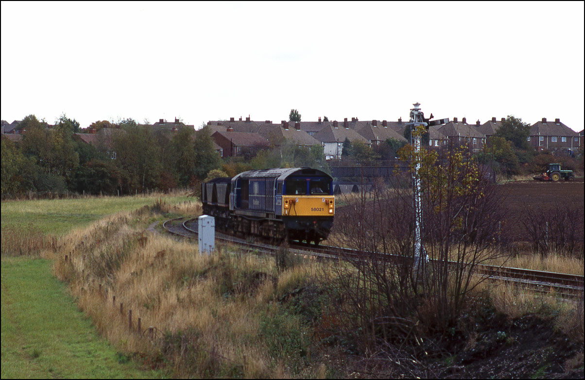 I spent a few hours in the Barrow Hill area on 22 August 1990 and among several steel and departmental trains obtained this shot of 58021 at Hall Lane Junction. I went without any "gen" and unfortunately have no real idea of the origin or destination
