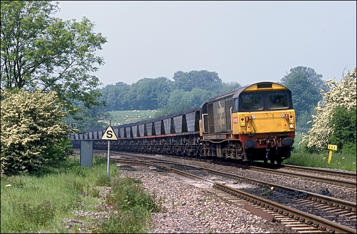 load of coal in HAA hoppers came from Welbeck colliery but before long most coal for Didcot was imported and ran from Avonmouth Docks at Bristol, mostly hauled by class 60. This saw a huge reduction in traffic