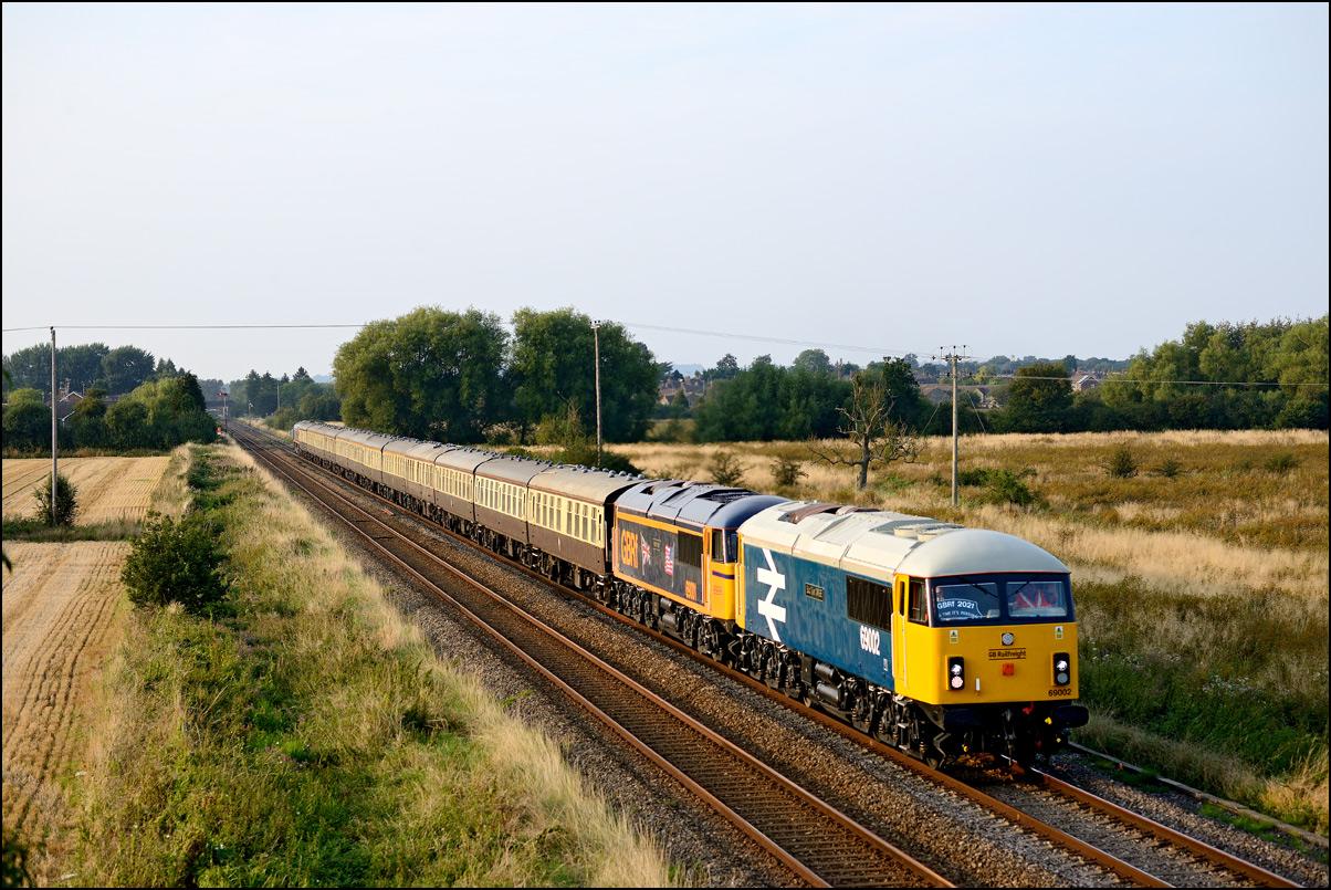 Honeybourne area when 69002 suffered fuel supply problems and it was fortunate that 69001 was able to take 1Z35 forward. A third locomotive, GBRf 66765 was on the back of the formation