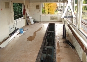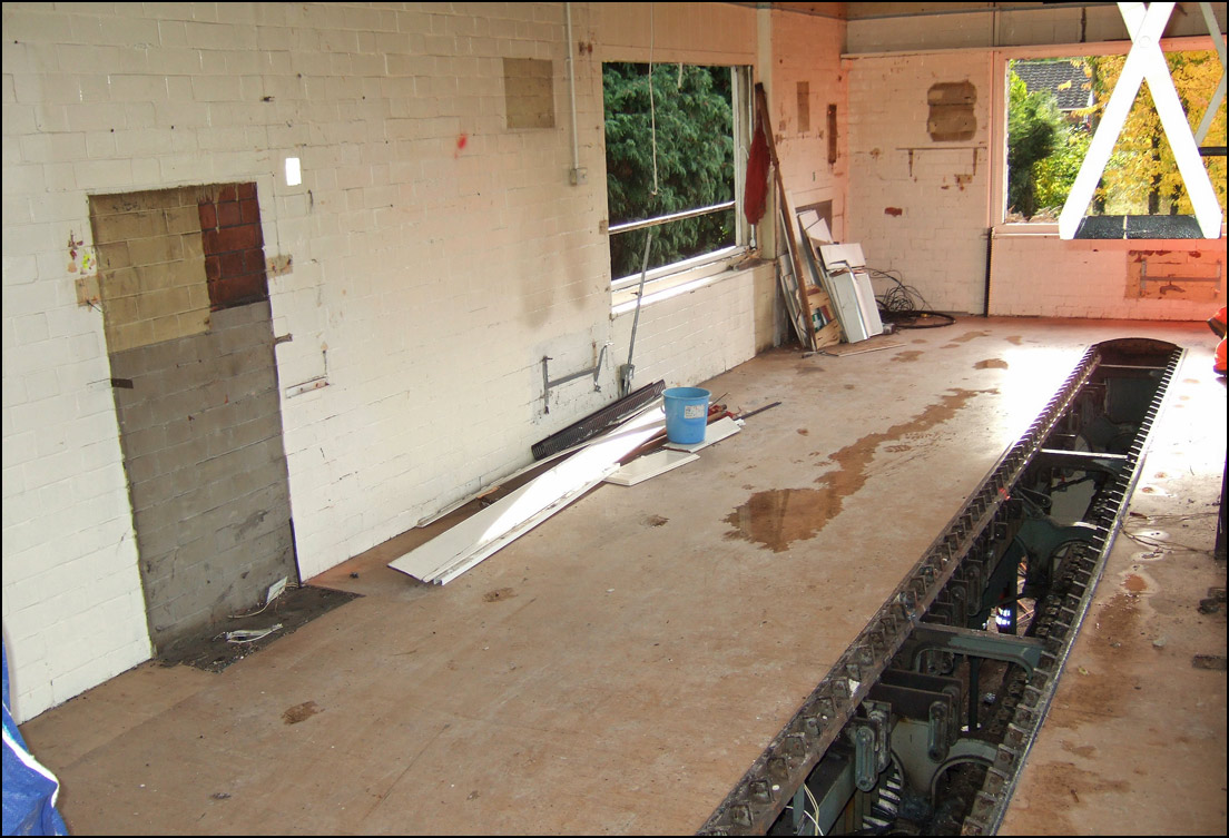 The end finally comes for Henley-in-Arden signalbox. This, showing a couple of abandoned signal wire tensioners, and the two linked photographs were taken just before demolition. This one shows for the last time the view towards the station including, ironically, the new LED signal at the down end of platform one controlled from Landor Street panel. The second hyperlink shows a wider general view including the remains of the interlocking frame. |