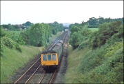 With few booked passenger workings, class 20s have always been popular traction for railtours. The "Stilton and Branston Ploughman" run on 5 July 1987 was no exception and I was especially pleased because it gave the chance to photograph a locomotive-hauled train on the normally DMU only North Warwickshire line. It was also the first time I had recorded 20s, 20022+20126, on this line. The spot selected was a rural view just south of Wood End tunnel. The train was late and with the sun going in and out the wait was a little fraught. However, when the special finally appeared the sun, although not at full strength, was not at all bad. This was an attractive location but I wish that I had gone to somewhere with a little more character and with something to identify that this was the North Warwickshire Line. |