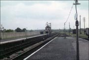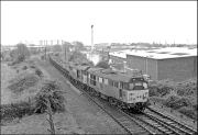 Just about everything in this photograph has gone. 31286 was standing on the down goods loop outside Stratford-upon-Avon station with the Chipmans weedkilling train on 16 June 1987. The signal box, signals and gas holders have long since disappeared, the loop itself has been lifted and the locomotive and stock have been scrapped. |