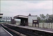 This picture and the one following were taken in the Summer of 1962 and kindly sent to me by Terry Phillips whom I met recently on the railway bridge at Bishopton. This one shows the down side of Bearley station including the signalbox that controlled the small yard and sidings along with the direct spur to and from the Henley-in-Arden line, access to which was granted by the shorter arms on the bracket signal. This spur was much used in steam days as Stratford-upon-Avon had no turntable and the triangular junction at Bearley was the quickest and easiest way for locomotives to be turned. The line was also used for diverted trains on the occasions that engineering work blocked the GWR line from Birmingham to Leamington Spa via Solihull. Also of note is the bay platform used by trains heading for the Alcester branch which travelled along the North Warwickshire Line as far as Edstone where it turned off to the left on the single line to Alcester via Great Alne. |