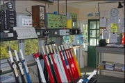 This is the view towards the Hatton and Henley-in-Arden end of Bearley Junction signalbox showing the array of disused levers painted white, along with those with shortened levers reminding the signaller that the signals they operate have power assistance and don't need any effort to pull. Also in shot are the electric cooker and refrigerator used by the signallers; these being relatively modern additions as it was less than 20 years ago that the 'box had a power supply only for the train describer, lighting being by gas lamps and with a water supply brought from Stratford on the second Leamington Spa train of the day. Bags of coal for the iron stove were delivered at the same time during the winter months and manually humped up the steps. |