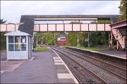 Looking the other way the picture above on 5 September 2009 here is a shot of the second visit in recent weeks of the Northern Belle to Stratford-upon-Avon. Wilmcote is on the way home from Hatton where I had been photographing earlier in the morning so it seemed silly not to drop in at the attractive station for a shot of 67027 passing through with 1Z67 from York. The light had entirely collapsed by the time the train was due but I felt that a picture was worthwhile as this is only the second daytime working of class 67 along the line. The train is here seen passing under the GWR footbridge, which although in reasonable condition is painted in a strange shade of browny-pink, quite unlike anything the GWR or any subsequent railway company has used. |